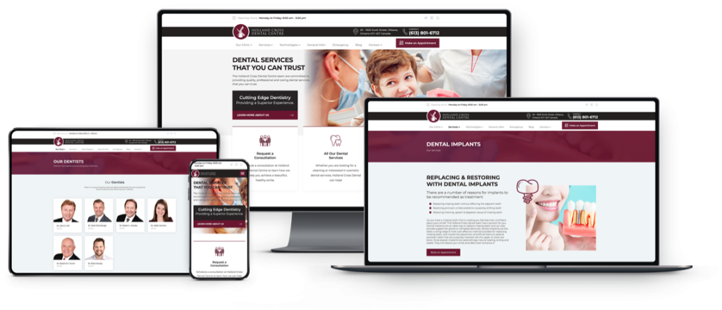 Holland Cross Dental Centre is one of the biggest and busiest dental clinics in all of Ontario, their team of dentists takes pride in the level of care they’re able to provide their patients. A professional team needs a professional website, and that’s exactly what WebMarketers delivered.
